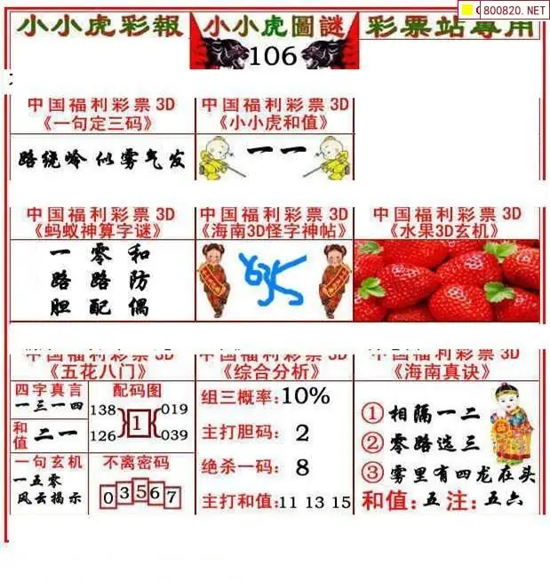 8 2026年106期3d字谜图谜总汇