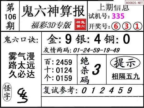 鬼六图26106期鬼六神算报+鬼六胆码图迷
