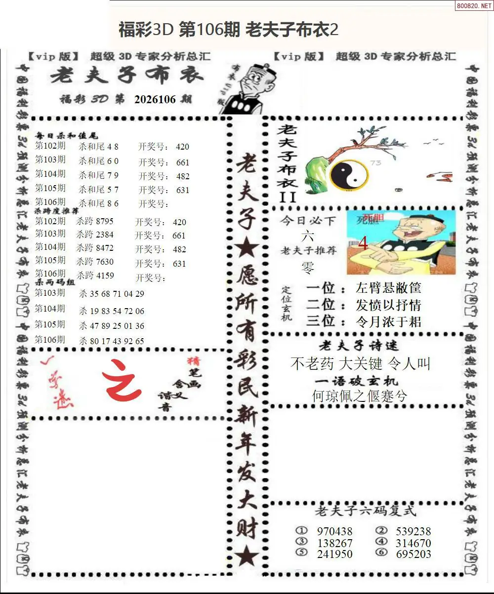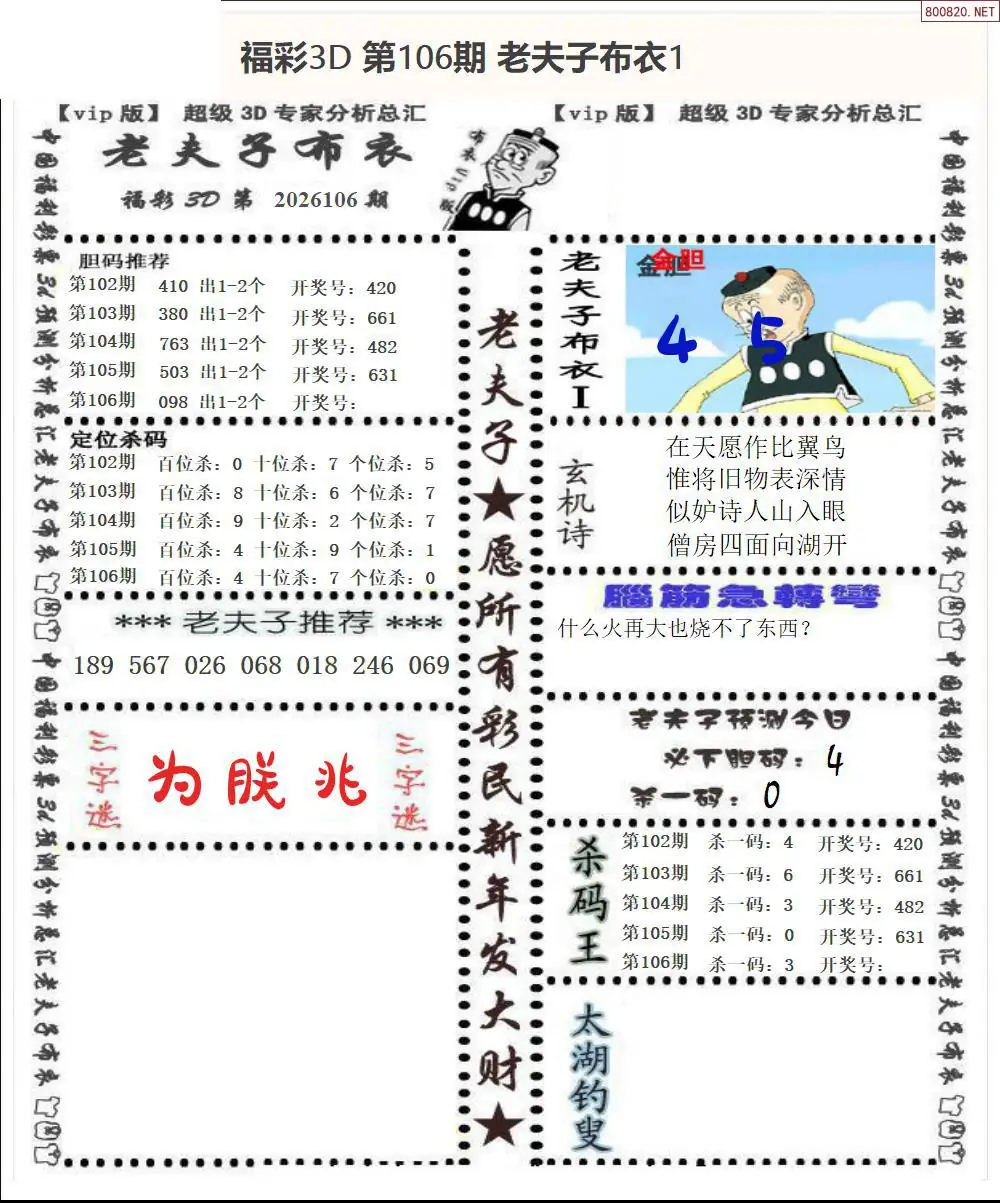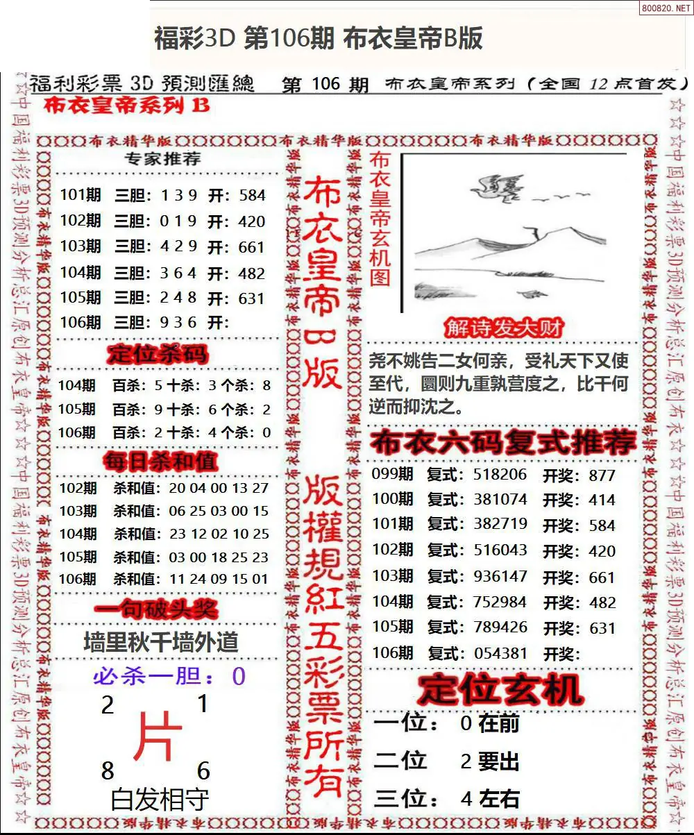 皇帝图26106期布衣皇帝+老夫子布衣3d图谜