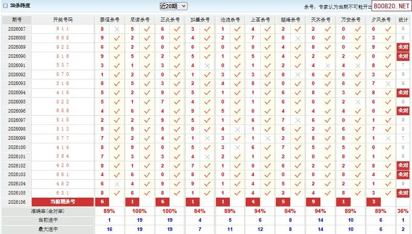 福彩3d26年106期澳客专家杀跨度