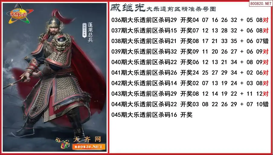 戚继光2026045期大乐透前区精准杀号图-原创