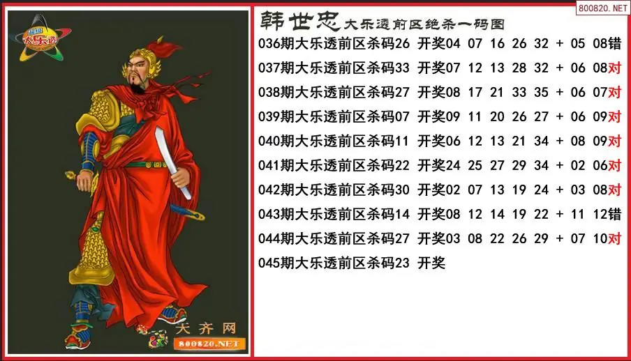 韩世忠2026045期大乐透前区绝杀一码图-原创