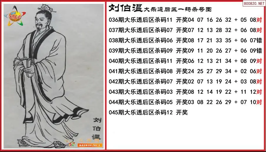 刘伯温2026045期大乐透后区一码杀号图-原创