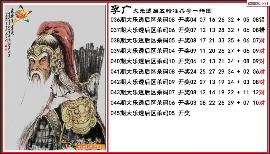 李广2026045期大乐透后区精准杀号一码图-原创