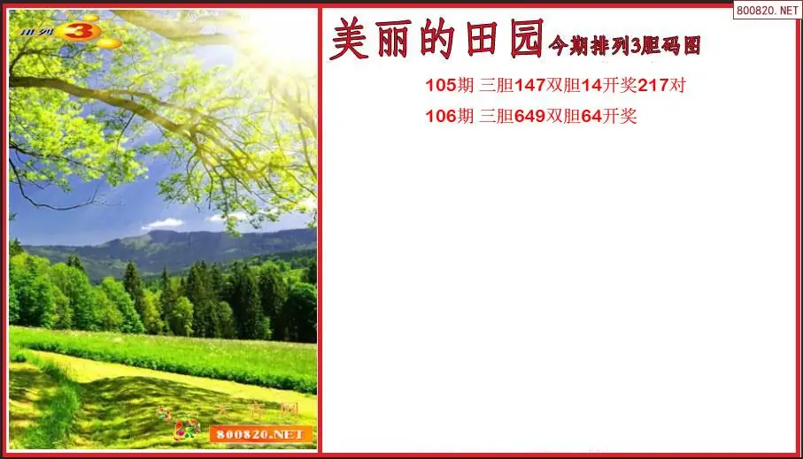 美丽的田园2026106期今期排列3胆码图(原创)