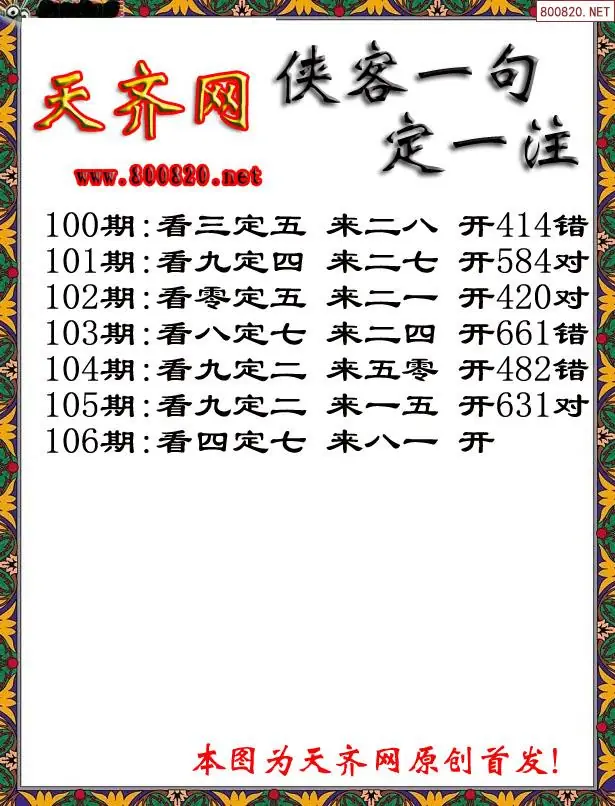 106期侠客一句3D定三码字图谜