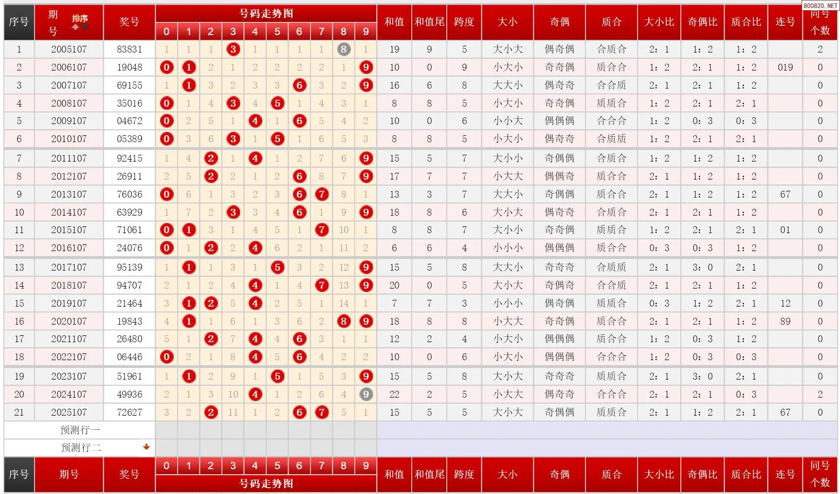 2 107期体彩P3历史同期对比图表+近期