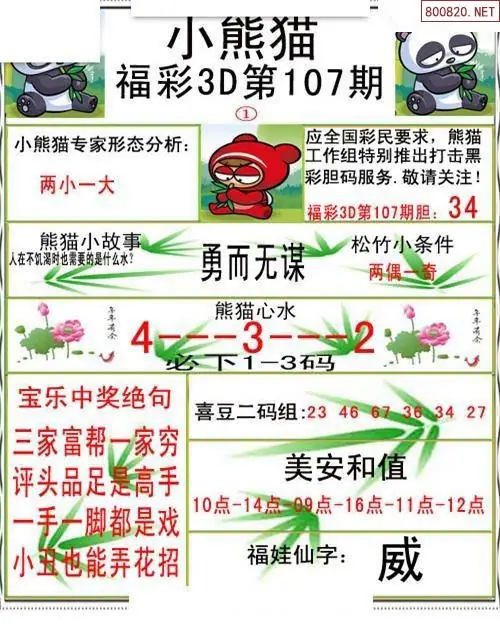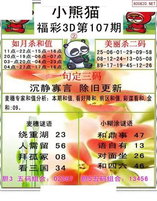 小熊猫26107期美安和值+一句定三码3d图谜