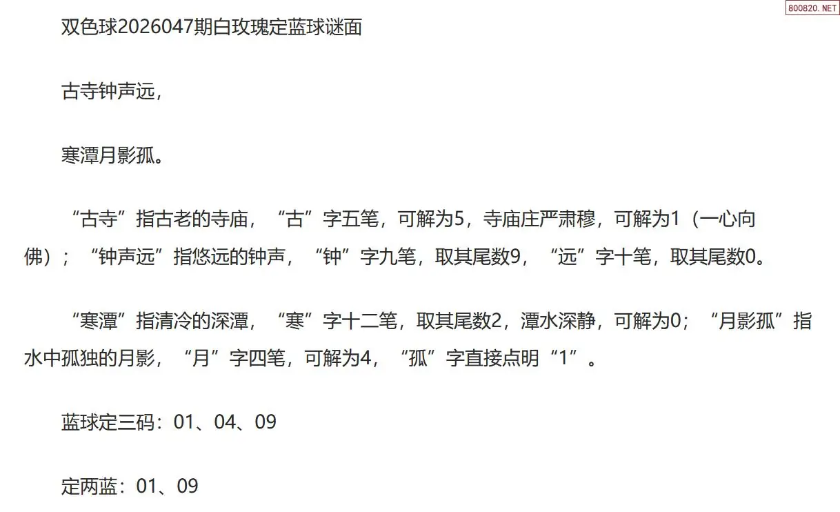 双色球26047期白玫瑰定蓝球字谜
