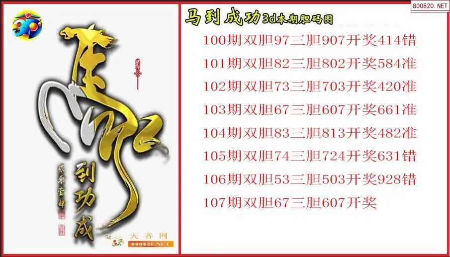 马到成功2026107期本期3d胆码图(原创)
