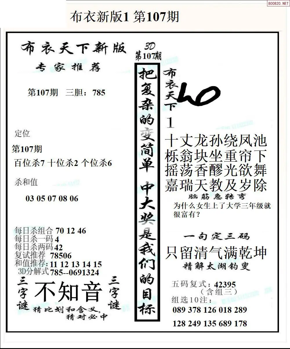26107期新版3d布衣天下1234