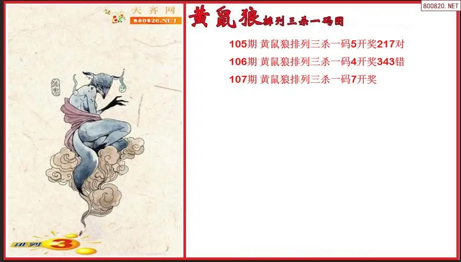 排列3第2026107期黄鼠狼杀一码图(原创)