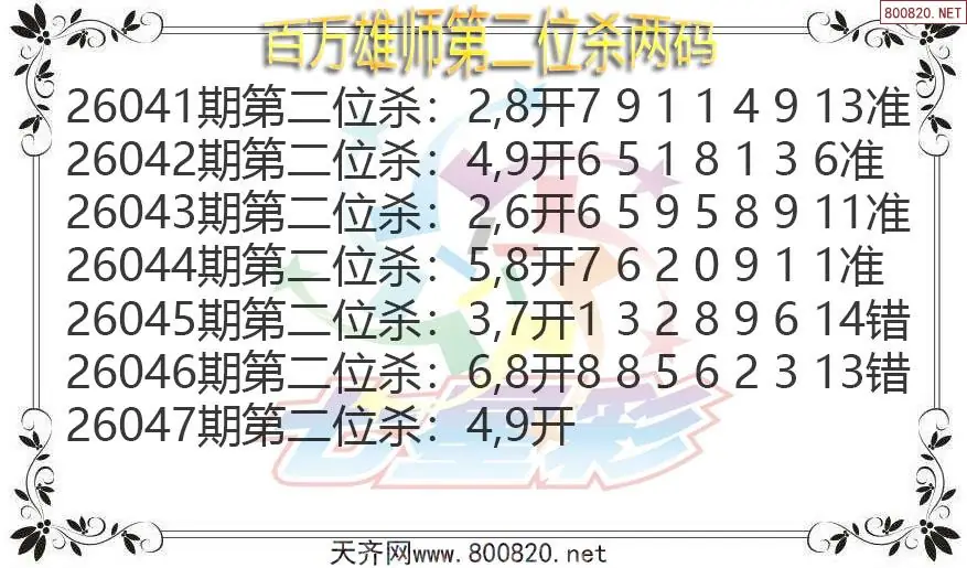 百万雄师26年047期七星彩杀号图谜