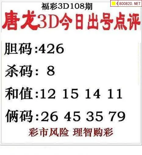 唐龙图26108期唐龙3d今日出号点评图迷
