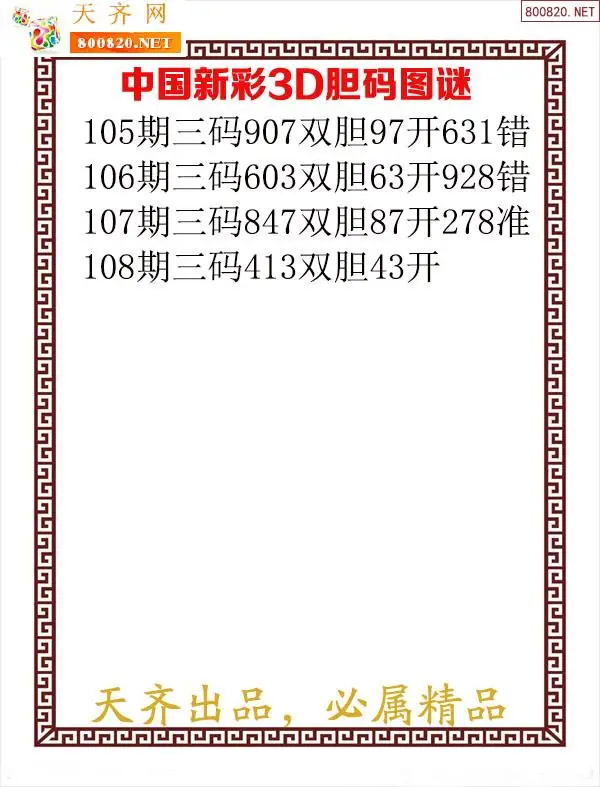2026108期新彩福彩3d图谜-天齐原创发布