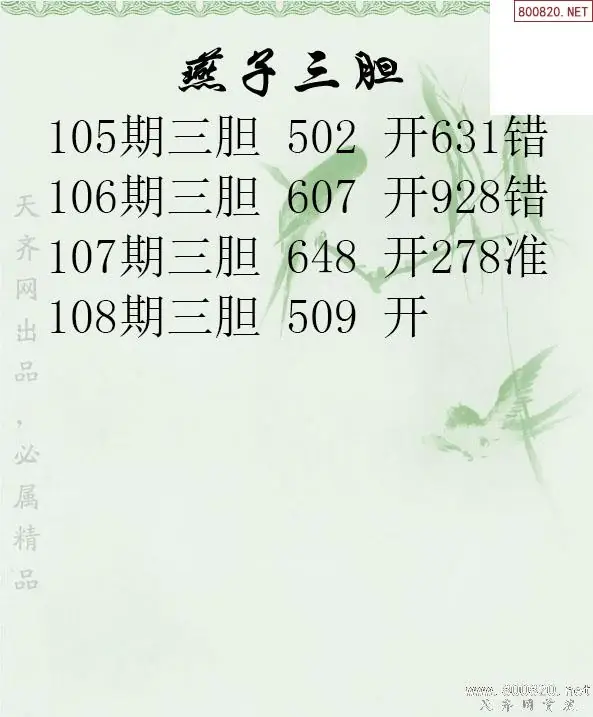 26108期燕子三胆3d胆码图谜-天齐原创