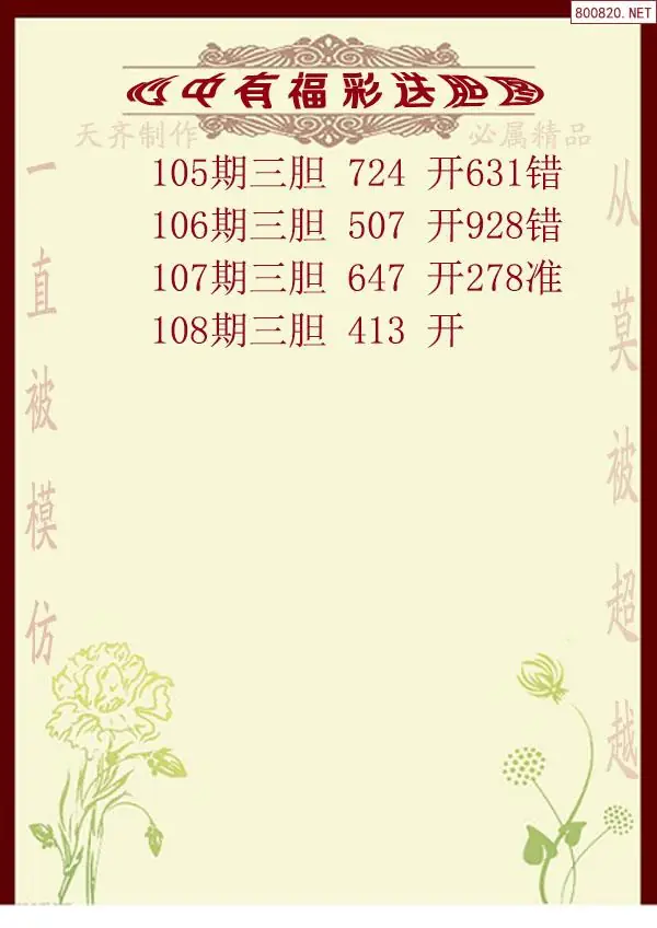 2026年108期心中有福福彩送胆图谜(天齐网原创)