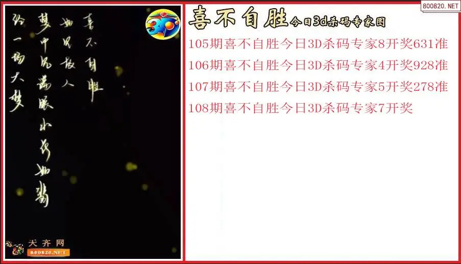 您现在所在的位置: 天齐网 >> 福彩3D >> 3D图谜 >> 正文