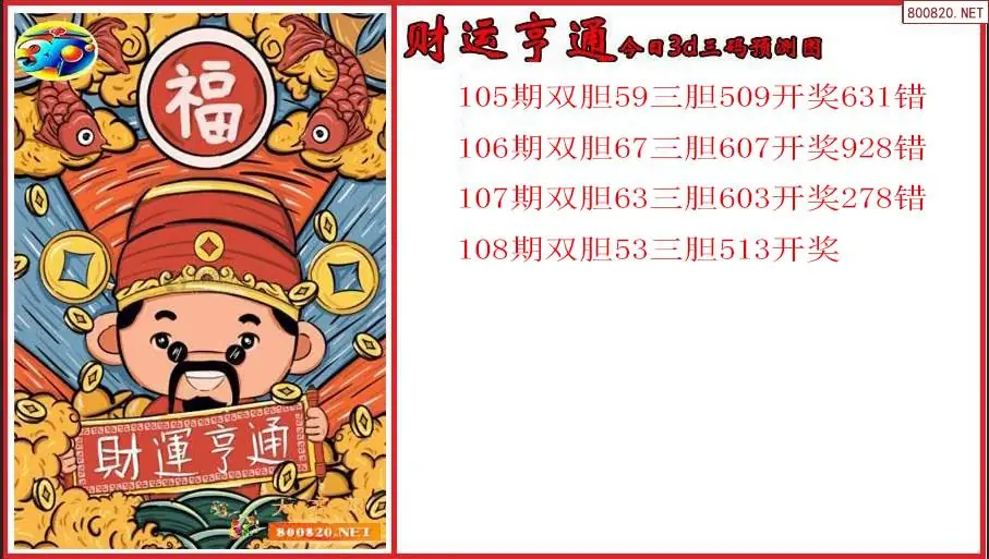 2026年财运亨通108期今日3d三码预测图(原创)