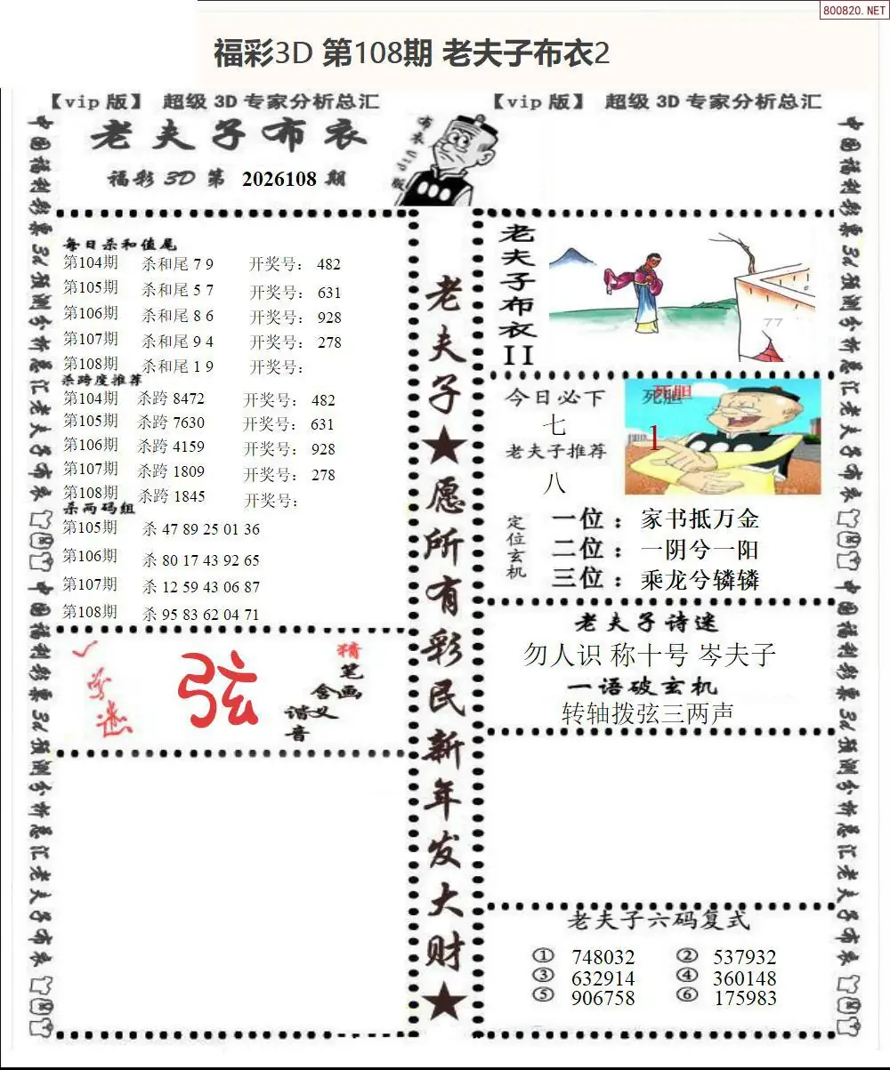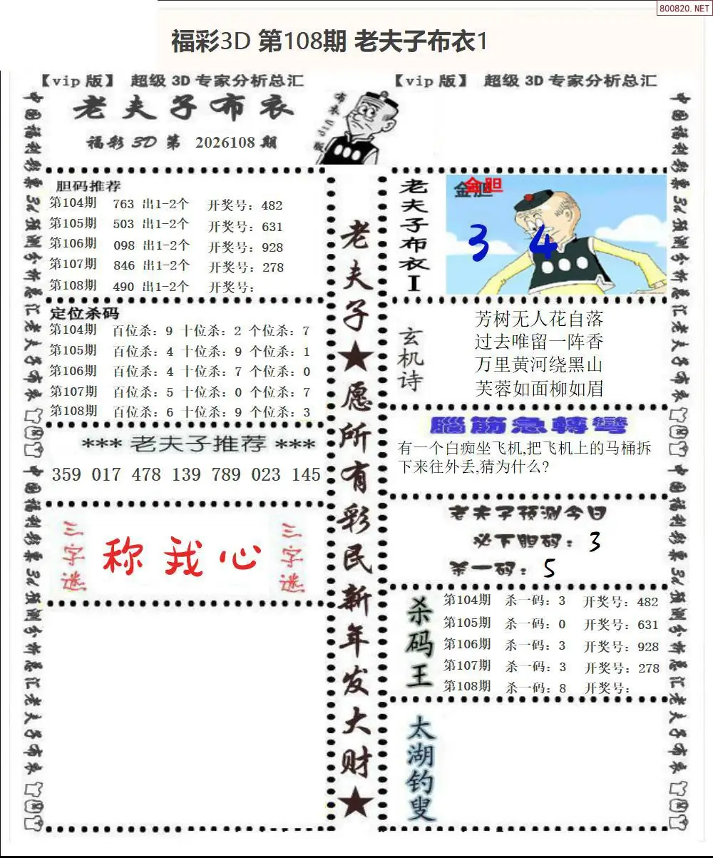 皇帝图26108期布衣皇帝+老夫子布衣3d图谜