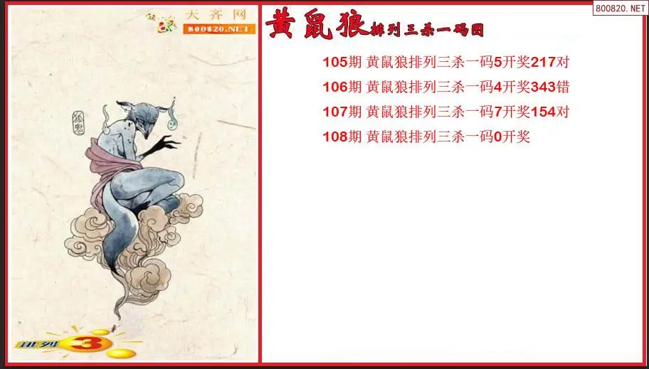 排列3第2026108期黄鼠狼杀一码图(原创)