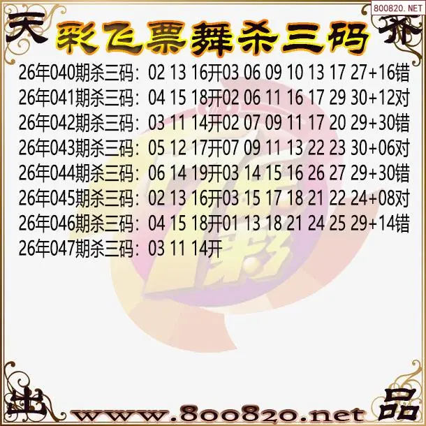 彩飞票舞26年047期七乐彩杀号图谜