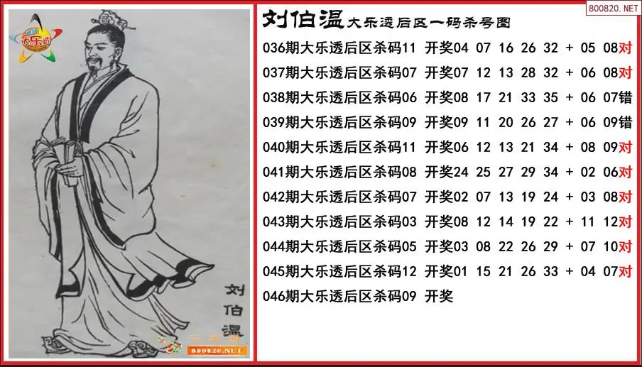 刘伯温2026046期大乐透后区一码杀号图-原创