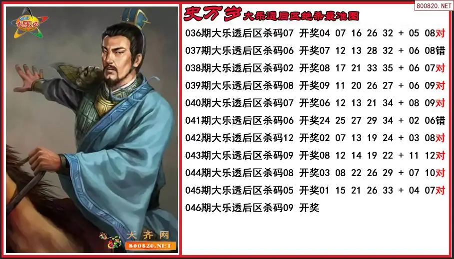 史万岁2026046期大乐透后区绝杀最准图-原创