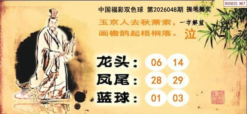 双色球26年048期提笔揭奖龙头凤尾图谜
