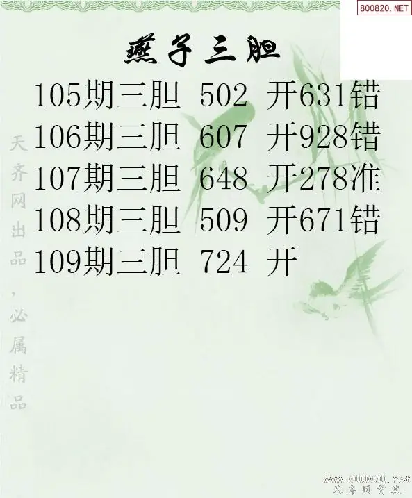 26109期燕子三胆3d胆码图谜-天齐原创