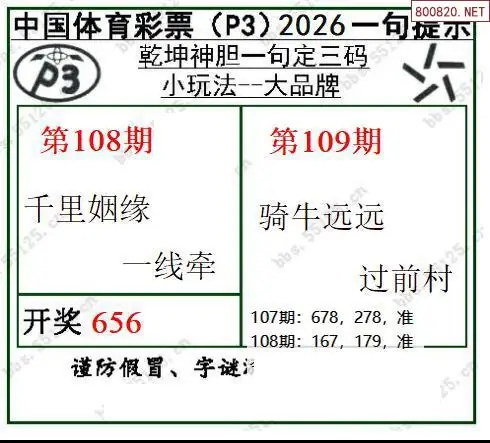 2026109期乾坤一句p3定三码图谜