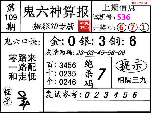 鬼六图26109期鬼六神算报+鬼六胆码图迷