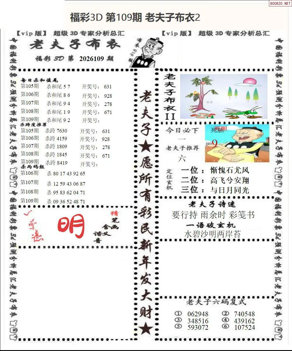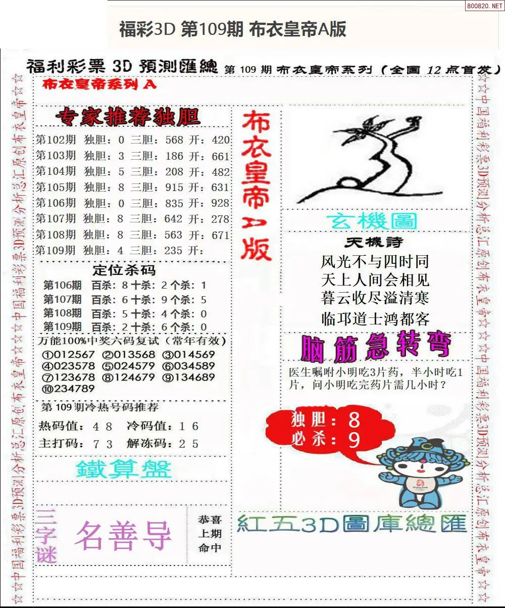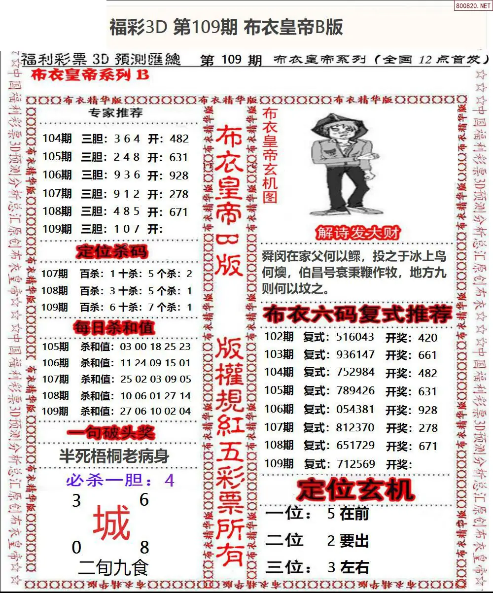 皇帝图26109期布衣皇帝+老夫子布衣3d图谜