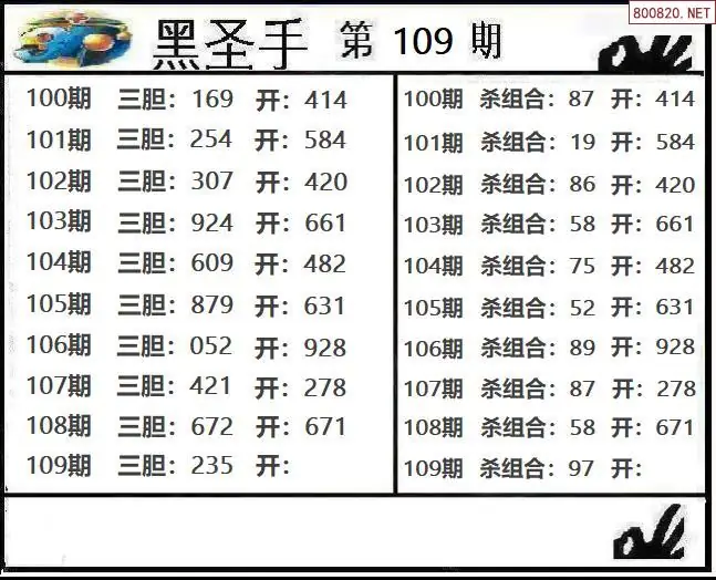 圣手图26109期黑圣手三胆+杀组合图谜