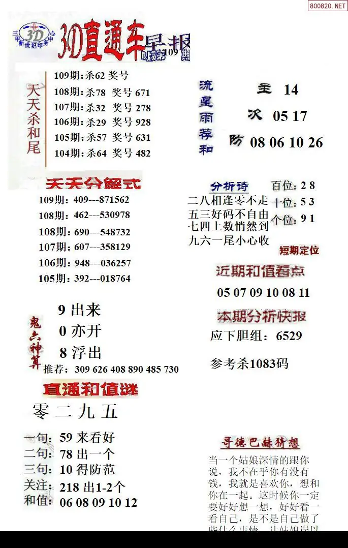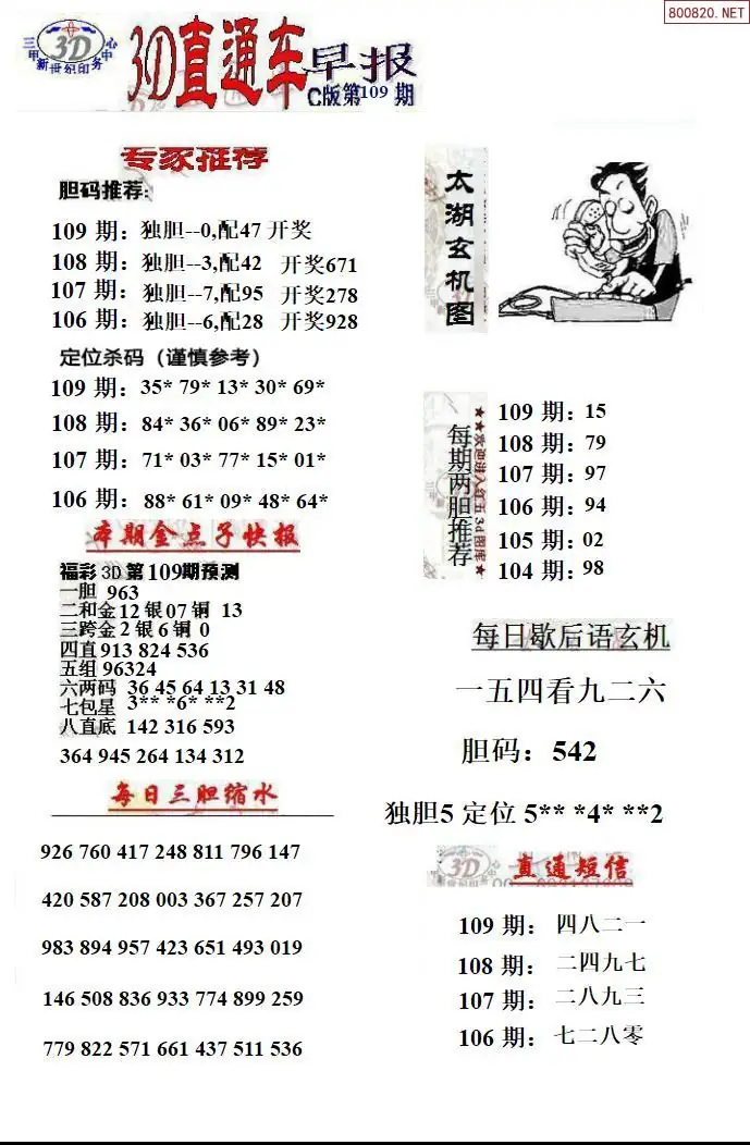26年109期福彩3D直通车早报ABCD版