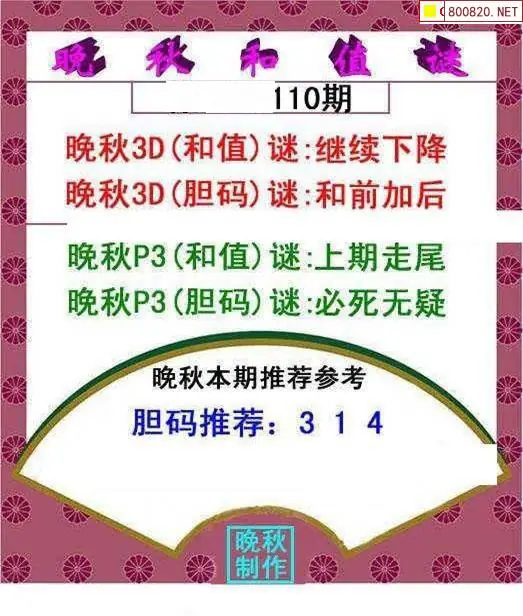 晚秋图26110期3d晚秋和值迷图谜版