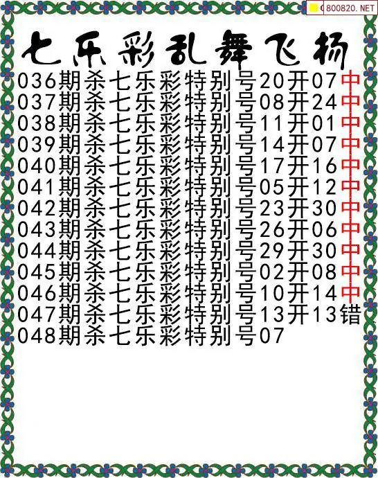 七乐彩26年048期乱舞飞扬特别号杀码图迷