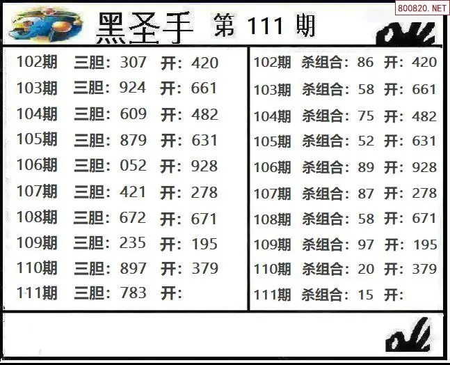 圣手图26111期黑圣手三胆+杀组合图谜